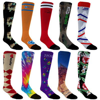 These socks are a great promotion for any sports team, gym, or club! The black interior keeps your logo intact without the unsightly white lines when worn.